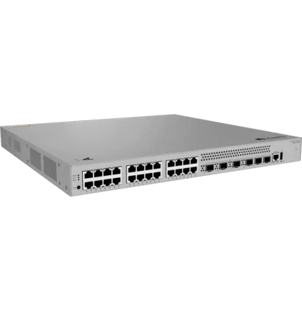 2,190.00 MADModèle : Huawei S310S-24T4JX Type de switch : Géré (Layer 2+) Format : Rack 1U Dimensions (H x L x P) : 43,6 mm x 442 mm x 160 mm Poids : Environ 2,76 kg (avec emballage) Matériau du châssis : Métal Refroidissement : Sans ventilateur, dissipation thermique naturelle Alimentation : Module AC intégré (non remplaçable) Tension d’entrée : 100–240 V AC, 50/60 Hz Capacité de commutation : 98 Gbit/s Taux de transfert : Jusqu’à 102 Mpps Mémoire interne : 2 Go Mémoire flash : 1 Go Table d’adresses MAC : Jusqu’à 16 000 entrées