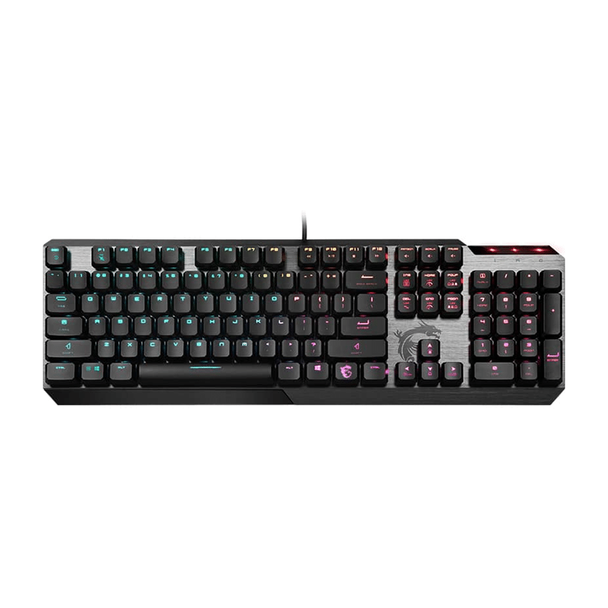 Clavier mécanique pour gamer Switches Kailh White Low Profile : rapide, précis et robuste Durée de vie : 50 millions de pression N-Key Rollover et anti-ghosting sur toutes les touches Rétro-éclairage LED RGB touche par touche personnalisable Design fin : seulement 34 mm de hauteur Touches octogonales Conception robuste et durable : plaque supérieure en métal brossé, touches à revêtement mat Gaming base pour une robustesse en hausse Câble USB d’une longueur de 1.8 m Logiciel Dragon Center pour les réglages détaillés 2 touches supplémentaires de forme arrondie (CTRL Gauche + ALT Droite)